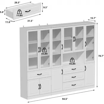 2-Piece Large Storage Cabinet Set with Glass Doors, Home Office Bookcase Display Cabinets