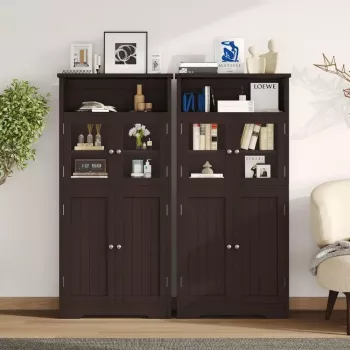 50.4'' Tall Bathroom Storage Cabinet with Glass Doors