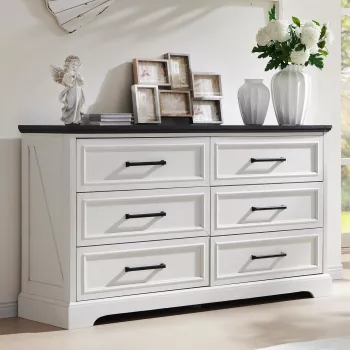 52" Rustic Wood Bedroom Dresser TV Stand with 6 Drawers & Bar Handles