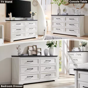 52" Rustic Wood Bedroom Dresser TV Stand with 6 Drawers & Bar Handles