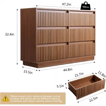 6-Drawer Modern Wood Dresser - Light Walnut Chest of Drawers for Bedroom, Living Room, Entryway