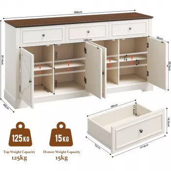 63" Farmhouse Sideboard Buffet Cabinet with Drawers and Adjustable Storage