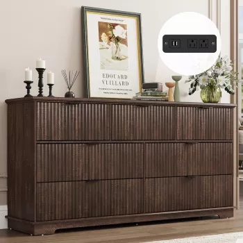 63" Fluted 7 Drawer Dresser with Power Outlet