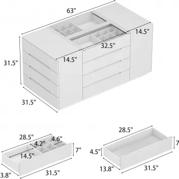 63" Lighted Glass Display Cabinet with 16 Drawers