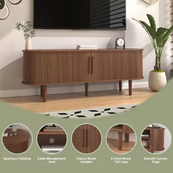 63" Mid-Century Modern TV Stand with Sliding Door & Storage for 50-65” TVs