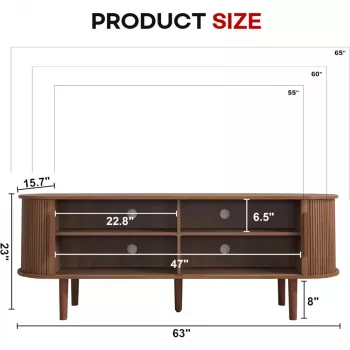 63" Mid-Century Modern TV Stand with Sliding Door & Storage for 50-65” TVs