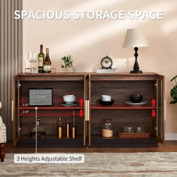 64" Modern Sideboard Buffet Cabinet with Glass Doors and LED Light