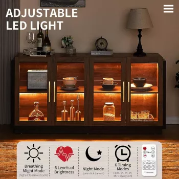 64" Modern Sideboard Buffet Cabinet with Glass Doors and LED Light