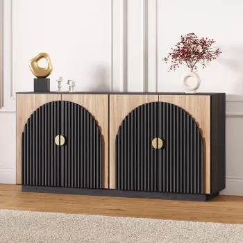 65 Inch Fluted Sideboard Buffet Cabinet with Storage and Arched Doors – Camel
