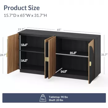 65 Inch Fluted Sideboard Buffet Cabinet with Storage and Arched Doors – Camel