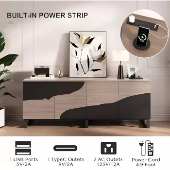 70" TV Stand with Power Outlet & Storage - Modern Black Entertainment Center