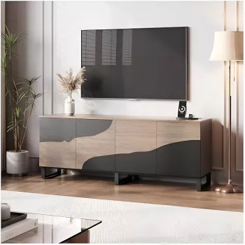 70" TV Stand with Power Outlet & Storage - Modern Black Entertainment Center