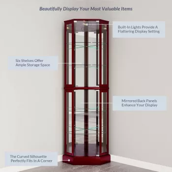 Corner Display Cabinet with Glass Doors & Liquor Storage, 6 Shelves for Living Room