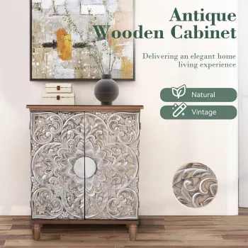Distressed Silver Embossed Wood Accent Cabinet with Doors