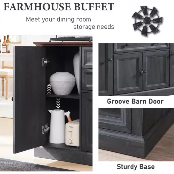 Farmhouse 58" Buffet Cabinet with Drawers & Barn Doors