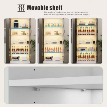 LED Storage Cabinet with Adjustable Shelves & Smart Sensor, Modern Display Bookcase