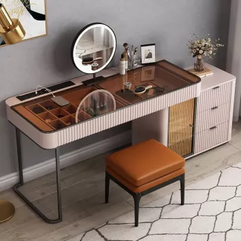 Makeup Vanity Desk with LED Mirror, Storage Cabinet & Solid Wood Stool