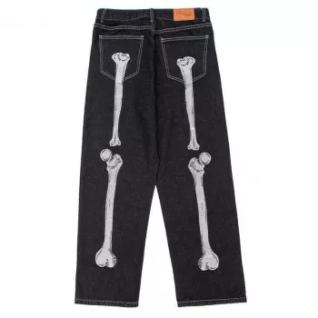 Skeleton Embroidery Baggy Denim Jeans – Men’s Wide Leg Streetwear Trousers