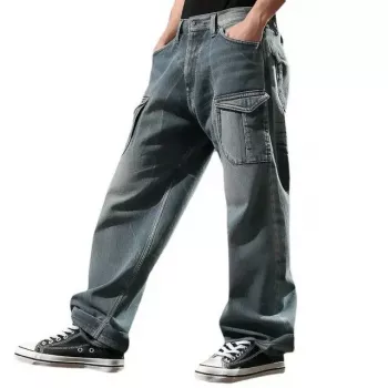 Streetwise Baggy Denim Cargo Jeans – Wide Leg Skateboard Pants for Men