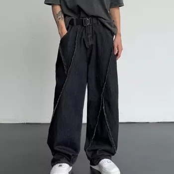 2023 Trendy Patchwork Denim Wide-Leg Men’s Jeans | Oversized Streetwear