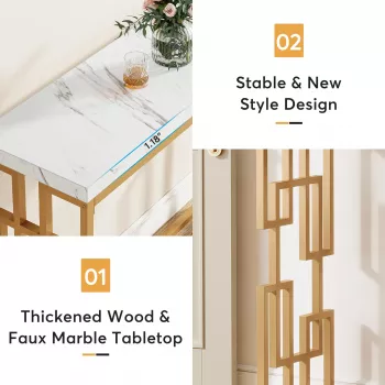 Modern 42.5" Gold Console Table with White Faux Marble Top – Sofa & Entryway Table