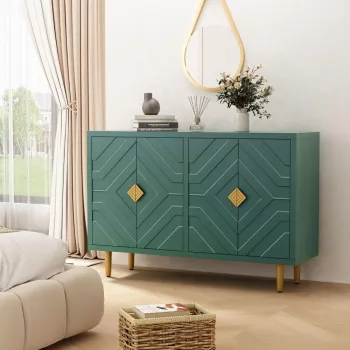 Modern 48" Green Accent Cabinet with Embossed Doors and Shelves
