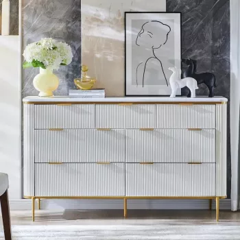 Modern 7 Drawer Dresser with Gold Accents
