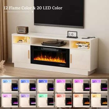 Modern 70" TV Stand with Electric Fireplace & LED Lights for 75"+ TV