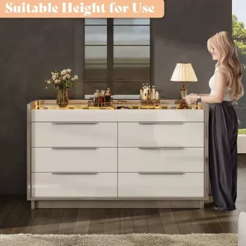 Modern 8-Drawer Dresser with Glass Top & LED Lights