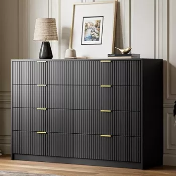 Modern Black 8-Drawer Double Dresser for Bedroom, Closet & Living Room