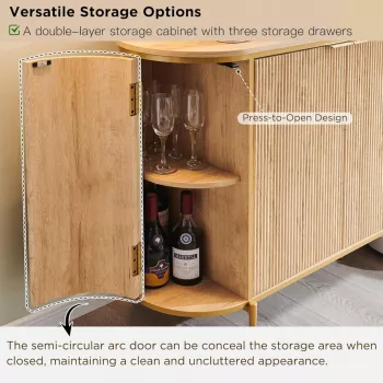 Modern Fluted Buffet Cabinet, 60" Console with Storage for Dining, Kitchen, or Living Room
