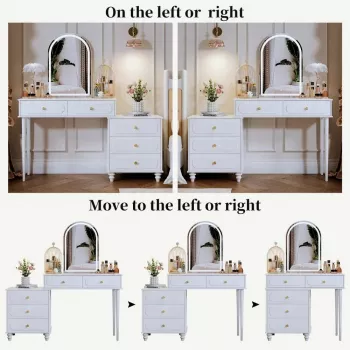 Modern Vanity Desk with Mirror, Lights & Power Outlet
