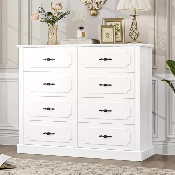 Modern White 8-Drawer Wood Dresser Chest - Spacious Storage Cabinet for Bedroom & Living Room