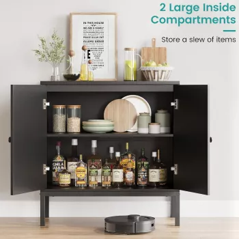 Rattan Buffet Storage Cabinet with Doors and Shelves