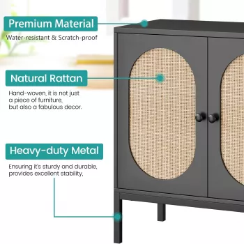 Rattan Buffet Storage Cabinet with Doors and Shelves