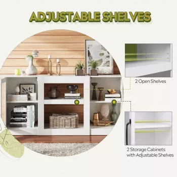 Retro TV Stand for 65 Inch TV with Storage and Open Shelves – 58 Inch Console