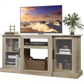 Retro TV Stand for 65 Inch TV with Storage and Open Shelves – 58 Inch Console