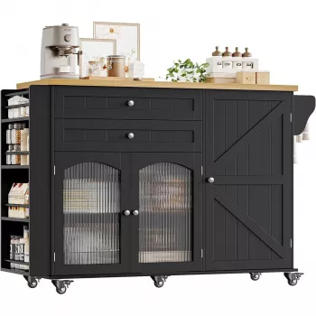 Rolling Kitchen Island with Storage, Drop Leaf Countertop & Bar Cart, Modern Island Table