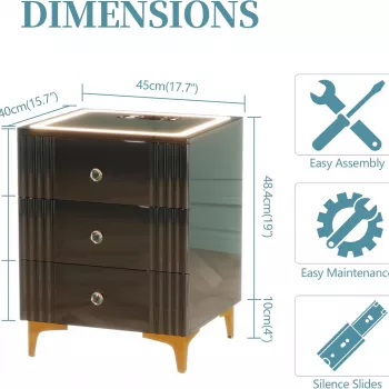 Set of 2 LED Nightstands with Wireless Charging Station and 3 Storage Drawers