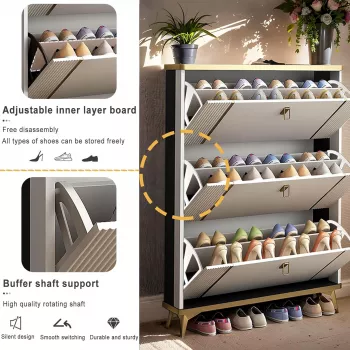 Slim Modern Shoe Cabinet with 3 Flip Drawers