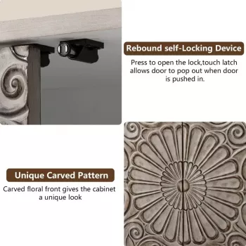 Vintage Wood Sideboard Cabinet with Adjustable Shelf & Carved Doors