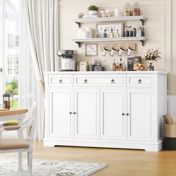 White Sideboard Buffet Cabinet with Drawers and Doors, 55.1" Modern Storage Unit
